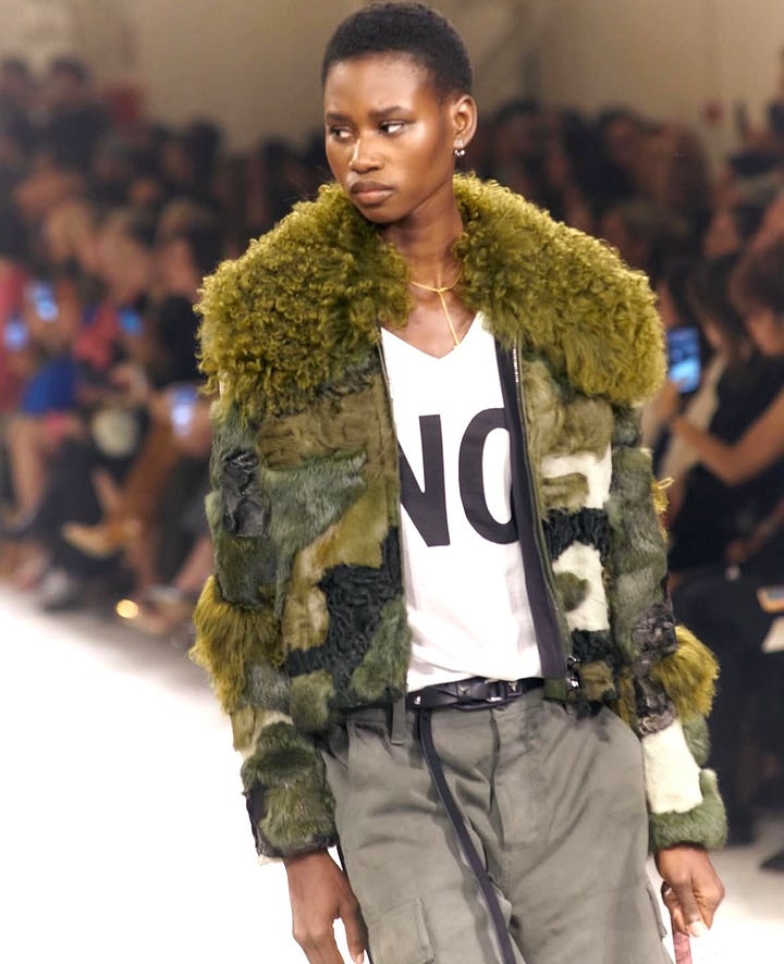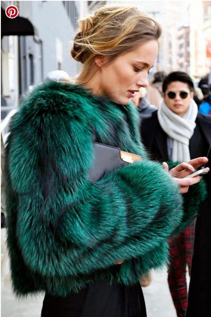 I’ve been out of the Milan fashion show scene long enough to have missed the fact that Fendi doesn’t show much fur on the runway anymore. Most fashion brands don’t, but Fendi was a fur brand, and Karl Lagerfeld, the head designer there for 54 years, famously used the house’s resources and technical skill to make fur fashionable and funky. In 2000 he started designing these cool, colorful patchwork coats. There’s one in the window at the Soho vintage shop What Comes Around Goes Around. Coincidentally, I’ve been seeing a lot of younger women wearing their mother’s (or grandmothers’) old fur coats, and while “vintage” might be cool, these coats look slightly off. They’re too far behind the fashion curve. A friend called the floor-length fox or raccoon coat the “mafia wife” look, but I think it’s more about the fact that the fur market has been dormant for so many years it’s fallen completely out of fashion. A few designers revived fur this season, but usually only mixing shearling with faux fur as at Fendi and Etro in Milan. On the streets, influencers are wearing colorful faux fur chubbies, which look kind of fab. On a recent flight home from L.A. I saw a chic young woman wearing a multi-colored patchwork faux fur jacket. After all the CBK obsession with monotone 90s minimalism, maybe fashion can be fun again. KB